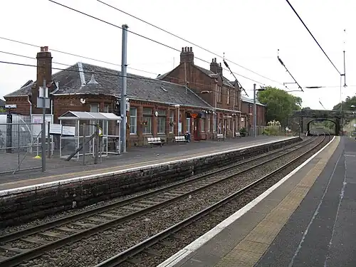 Johnstone (Renfrewshire) railway station serves the town of Johnstone, Renfrewshire, Scotland. The station is managed by ScotRail and is on the Ayrshire Coast Line 10+34 miles (17.3 km) south west of Glasgow Central. Johnstone has no ticket gates but ticket checks take place occasionally.