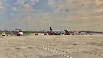 The expansion work was expected to cost ₹72 crore (US$8.5 million) and was to be completed by the end of 2007.[12] However, it took a few months longer, and scheduled flights resumed in March 2008 with Air Deccan re-launching its flights.[8] Air India launched flights from the airport to Delhi on 28 January 2010,[13] followed by SpiceJet in 2012.[14]