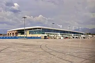 The new terminal initially covered an area of 12,950 m2 (139,400 sq ft), was capable of handling 1,800 passengers during peak hours and about 2 million passengers annually, which now increased to an area of 42,776 m2 (460,440 sq ft), an apron capable of handling 20 Airbus A320 and Boeing 737 type aircraft, and is able to handle 3,240 passengers during peak hours and 4.7 million passengers annually, thereby expanding the capacity of the airport by eightfold.[17] The new terminal building has a concourse, check-in areas, security hold and arrival lounge on the ground floor, security hold at first floor, and various offices on the mezzanine floor.[18]