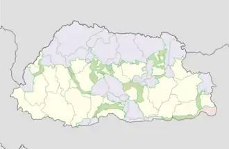 Jomotsangkha Wildlife Sanctuary (formerly Khaling Wildlife Sanctuary) is the smallest protected area of Bhutan covering 334.73 square kilometres (129.24 sq mi) in Samdrup Jongkhar District along the southern border with Assam. Its elevations range between 400 metres (1,300 ft) and 2,200 metres (7,200 ft). Khaling Wildlife Sanctuary is, despite its small acreage, an important habitat for elephants, gaur (Bos gaurus), and other tropical wildlife. It may also contain the rare pygmy hog (Porcula salvania) and hispid hare (Caprolagus hispidus) known to inhabit the adjacent Khaling Reserve in Assam, with which Khaling Wildlife Sanctuary forms a trans-border reserve.[1][2]