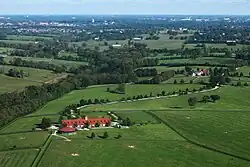 The farm stands on what was part of the nearly 8,000 acres granted to Abraham Bowman, a veteran of the American Revolutionary War. Keeneland racetrack was later built on the site of Bowman's plantation.[3] The land that eventually became Jonabell Farm contains Bowman Cabin, built in 1799.[4] The original stone water tower also still stands.[5]