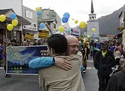 ![]() Jonathan Kreiss-Tomkins in front of the Alaska State Capitol in February 2020 | |