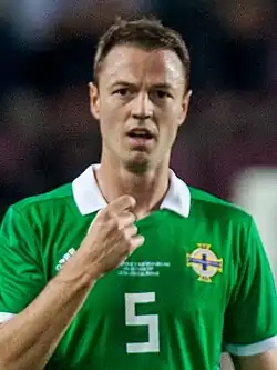 Evans is the second-most decorated player in Northern Irish football history.[7][8] He played over 100 matches for the Northern Ireland national team, including as an ever-present in the team's run to the round of 16 at UEFA Euro 2016, as well as serving as captain. He retired from international football in 2024.[9]
