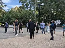 Klepper interviewing protestors against a New York COVID-19 vaccine mandate in August 2021