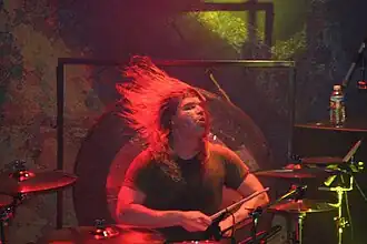 When Lambesis plotted to kill his wife, Mancino, along with AILD's guitarists Phil Sgrosso and Nick Hipa and bassist Josh Gilbert formed a new band called Wovenwar with Shane Blay, Oh, Sleeper's guitarist and vocalist.[10] Mancino recently stated that there is no ill will towards Lambesis.[11] Wovenwar has released two albums, Wovenwar (2014) and Honor Is Dead (2016). In 2016, Mancino filled in for Unearth drummer Nick Pierce for a brief time.[12][13] Mancino has released several play-through videos, including "Anodyne Sea".[14] In 2017, it was reported that Lambesis resurrected AILD with all new members. It was also stated that none of the original members, including Mancino, would return to the lineup.[15][16] However, in June 2018, it was confirmed the lineup of Mancino, Hipa, Sgrosso, Gilbert and Lambesis have reunited.[17] Mancino left As I Lay Dying in 2022.