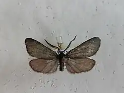The length of the forewings is 12–16 mm (0.47–0.63 in) for males and 9–12.5 mm (0.35–0.49 in) for females. Adults are on wing from the end of June to the start of August in central Europe and from May to July in the southern part of the range.