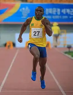 He competed at the 2006 World Indoor Championships, the 2007 World Championships, the 2008 World Indoor Championships and the 2008 Olympic Games without reaching the final. In Beijing he competed at the 100 metres sprint and placed 3rd in his heat after Tyson Gay and Olusoji Fasuba in a time of 10.29 seconds. He qualified for the second round in which he failed to qualify for the semi-finals with a time of 10.32 and only the sixth time of his heat.[1] Together with Sandro Viana, Vicente de Lima and Bruno de Barros he also competed at the 4 × 100 metres relay. In their qualification heat they placed fourth behind Trinidad and Tobago, Japan and the Netherlands. Their time of 39.01 was the seventh out of sixteen participating nations in the first round and they qualified for the final. There they sprinted to a time of 38.24 seconds, the fourth time after the Jamaican, Trinidad and Japanese teams.[1]