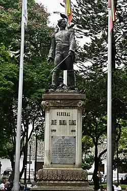 Cabal was arrested shortly thereafter and taken to Popayán, where he was subjected to a summary trial by Brigadier Sámano and found guilty of treason. His property was confiscated, and he was sentenced to death by firing squad. On the afternoon of August 19, 1816, José María Cabal was executed in the main square of Popayán, along with Colonels Mariano Matute and José María Quijano. All three were shot simultaneously while facing backward. After the execution, Cabal’s body was hanged from the gallows and left on display for several hours as a warning to the public.[54][55]