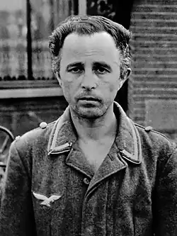 After the German invasion of Poland, Kotalla was called up for German military service. He was assigned to the SS and was wounded on the eastern front. When he had recovered, he left for the Netherlands in 1941.[6] Kotalla came to work at the cell barracks of the Scheveningen prison. At that time he met his first wife, a woman from the German city of Kleve, whom he married in 1941.[6] At the time of marriage she was 17 years old.[7] In September 1942 he was appointed by Schutzhaftlagerführer II Karl Peter Berg in Kamp Amersfoort. He entered service there as a camp SS soldier and became head of the Schreibstube, the administration. He started his duties at Abteiling III (Section 3).