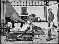 Joseph Kuhn-Régnier, (born as Joseph Louis Wilfrid Kuhn-Regnier ,10 December 1873 - 1940) was a French illustrator, draughtsman, and painter who worked and exhibited in Paris at the Salon d'Automne.[1] His work is recognizable by his characters inspired by Greek and classical art. He contributed full-page colored illustrations and advertisements to society magazines between 1911 and 1934 such as La Vie Parisienne, Fantasio, and Le Sourire. In 1932 he created colored illustrations for four volume collection The Works of Hippocrates, published by Javal & Bourdeaux in Paris. He also created illustrations for the erotic work The Songs of Bilitis in the 1930s.