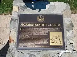 Plaque at Mormon Station State Park Listing Joseph L Heywood as the U.S. Marshal sent to help establish Genoa