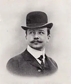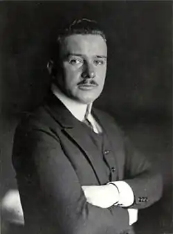 In the following years, Olbrich executed diverse architectural commissions and experimented in applied arts and design. He designed pottery, furniture, book bindings, and musical instruments. His courtyard and interiors[5] at the St. Louis World's Fair won the highest prize at the exhibition.[6] At the time, the St. Louis Post-Dispatch wrote of his pavilion, "The interior decorators of the United States are now talking about the Olbrich Pavilion. It is already indicated as one of the things at the World's Fair which will leave a permanent mark upon American life."[7] He was subsequently appointed corresponding member of the American Institute of Architects.[8] His architectural works, especially his exhibition buildings for the Vienna and Darmstadt Secessions, had a strong influence on the development of the Art Nouveau style.