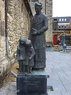 Statue of Peter Joseph Savelberg in Heerlen next to the Pancratiuskerk (St. Pancras church)