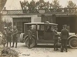 Dickman was then given command of the 3rd Infantry Division in November 1917.[2] He deployed the 3rd Division to France aboard the Leviathan at noon, on March 4, 1918. He was the 3rd Division commander at Chateau-Thierry in May 1918 and was made famous at the Second Battle of the Marne in July 1918. While allied forces on both flanks retreated, the 3rd Division stood fast in the face of enemy offensives, which led to their moniker, "The Rock of the Marne."[2]