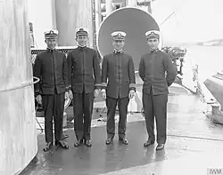 After a nine-day Atlantic crossing, most of the time in a severe southeast gale, DesDiv 8 reached Queenstown. The British commander at Queenstown, Vice Admiral Sir Lewis Bayly, hosted a dinner in the Americans' honor on the night of their arrival. At the dinner, Bayly asked Commander Taussig "When will you be ready to go to sea?" Taussig replied in the now famous words: "We are ready now, sir; that is, as soon as we finish refueling."[4]