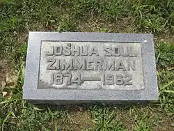Gravestone at the interment site of Joshua Soule Zimmerman at Indian Mound Cemetery in Romney, West Virginia