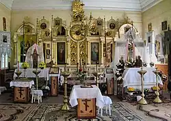The prestige of the sanctuary in Koterka grew further during the interwar period, when Metropolitan of Warsaw and all Poland, Dionysius, visited the shrine on the Feast of the Holy Trinity.[4] The parish chronicle from this period recorded additional cases of healings.[3] However, most testimonies of healings were not documented, and knowledge of them exists only in oral tradition.[1] The faithful came to the temple not only on the Feast of the Holy Trinity but also on the patronal feast day.[5]