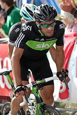 Juan Antonio Flecha Giannoni (born 17 September 1977) is an Argentine-born Spanish former professional road bicycle racer, who competed as a professional between 2000 and 2013.[2] Flecha had a reputation of being a Classics specialist[3] and to ride with an aggressive style as he was keen on participating in breakaways.[4] His major victories include winning a stage of the 2003 Tour de France, successes at the two defunct classics Züri-Metzgete and Giro del Lazio in 2004, and the Omloop Het Nieuwsblad in 2010. He was also known for his numerous high placings in important one-day races, most notably Paris–Roubaix, where he finished in the top ten eight times without registering the victory. In the Grand Tours, he was often assigned to a role of domestique.