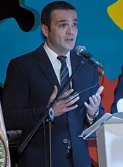 In February 2011, he debuted as Noticias Caracol, as host.[5] In the actuality, Alvira co-hosts the first edition of the news, alongside Catalina Gómez.[3] In addition to the presentation in Noticias Caracol, Alvira created the section "El periodista soy yo" (in English: "I'm the Journalist"), which is based on citizen complaints sent on video.[6] He also directs a space on Blu Radio titled "Vive Bogotá".[7]
