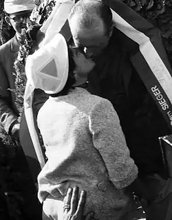 Fangio was taken to three separate houses. His captors allowed him to listen to the race via radio, bringing a television for him to witness reports of a disastrous crash after the race concluded. In the third house, Fangio was allowed his own bedroom but became convinced that a guard was standing outside the bedroom door at all hours. The captors talked about their revolutionary programme, which Fangio had not wished to speak about, as he did not have an interest in politics. He later said: "Well, this is one more adventure. If what the rebels did was in a good cause, then I, as an Argentine, accept it."[26] He was released after 29 hours, after being "treated very well".[27][28]