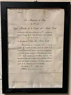The granting of the cross of officer of the Order of Civil Merit on 24 June 1977.