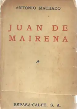 Juan de Mairena (sentencias, donaires, apuntes y recuerdos de un profesor apócrifo) is a book written in prose by the Spanish author Antonio Machado in 1936 and published by Espasa Calpe.[1]