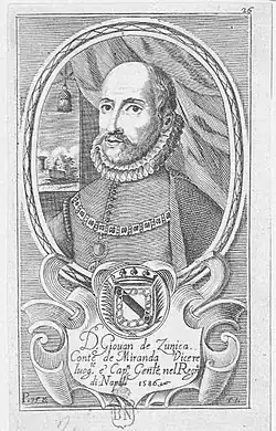 Juan de Zúñiga y Avellaneda, 1st Duke of Peñaranda de Duero (1551 – 4 September 1608) was a Spanish nobleman during the reigns of Philip II and Philip III.