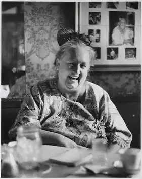 Musson was considered to be a "flamboyant and eccentric" woman.[9] She was overweight (over 300 pounds (140 kilograms) at her peak),[10] and always wore a flower-patterned muumuu. Her trademarks were her muumuu and verbal assaults. Journalist Alice Yarish remarked "She was rough and tumble and cussed a lot, but it was always funny. She was mean to everybody, and you liked it."[1]