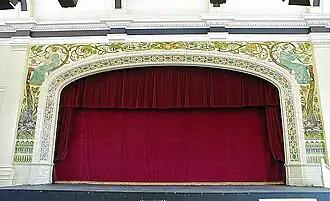 The Victorian theatre was opened on 30 May 1900 and features a plaque at the main entrance to mark the event.[2] It features a proscenium arch of Doulton tiles by W.J. Neatby, depicting two pre-Raphaelite figures which face east and west, as the theatre faces true north and south.[3]
