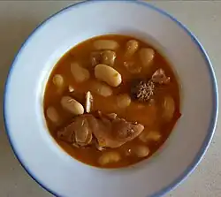 Barco de Ávila beans (called sometimes more briefly as "Barco beans" or "Judiones from El Barco") are dried beans, usually white and large, cultivated in the fields of El Barco de Ávila (southwest of the Province of Ávila), Spain. Its large size provides approximately about forty beans per 100 grams (a portion approximately for one person). Cooked with chorizo, blood sausage (morcilla), bacon or pig ears, it becomes a Spanish traditional food.[2]