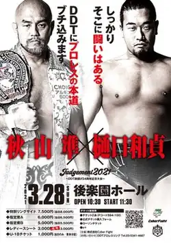 1. ^ a b c Judgement2021~DDT旗揚げ24周年記念大会~. DDT Pro-Wrestling (in Japanese). Retrieved March 28, 2021.
