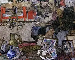 In his early years as an artist (from 1902) De Bruycker took up lodgings at an abandoned Carmelite abbey in the district across from the Gravensteen called the Patershol.[4] This was at the time an impoverished area and it had attracted artists and bohemians who had moved there from about 1900. Many of the artists who would become members of the so-called Schools of Latem such as Gustave van de Woestijne, George Minne and Valerius de Saedeleer converged on this area. George Minne even maintained a studio there for some time.[5]
