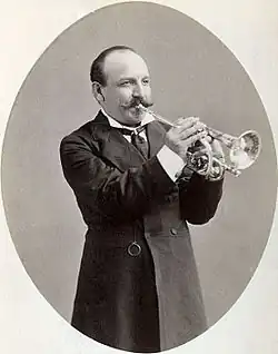 Born in London, England, he reportedly began his study of the cornet with only its mouthpiece; his family could not afford the instrument itself. After migrating to the United States, he began a significant musical career as a cornet soloist and was billed as "The World's Greatest Cornetist". He was widely regarded as a foremost player, although the claim of world's greatest has some challengers. He was a member of Patrick Gilmore's band for several years, performing with them at the Centennial Exposition in Philadelphia in 1876. He was also a tester and promoter for C.G. Conn, a manufacturer of musical instruments.