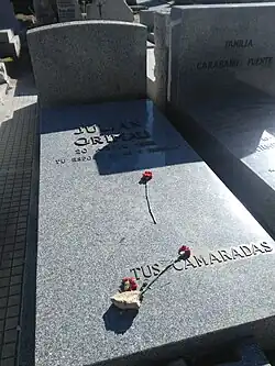 The firing squad he faced was to be composed of Guardia Civil members, but they refused to carry out the order, saying they did not bear responsibility for such things.[5] The Madrid captain-general (apparently on direct orders from Franco) resorted to a second option, and called on volunteer enlisted soldiers, who carried out the execution.[6] Julián Grimau was buried in Madrid's civil cemetery.