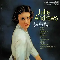 Julie Andrews Sings is the second solo studio album by English actress and singer Julie Andrews, released in 1958 by RCA Victor.[1] Following her debut album, The Lass with the Delicate Air (1957), which focused on English folk songs, this release marked a shift toward a repertoire of musical theater classics.[2] The album was recorded during a period when Andrews was gaining prominence for her role as Eliza Doolittle in My Fair Lady on Broadway, reflecting her rising status in the entertainment industry.[2]