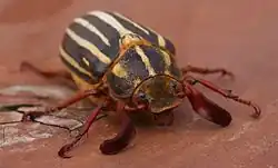 June beetle is the common name for several scarab beetles that appear around June in temperate parts of North America: