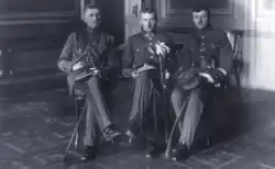On 20 October 1919, Papečkys was mobilized into the Lithuanian Army.[11] On 18 November 1919, Papečkys was promoted to lieutenant and then to senior lieutenant two weeks later.[11] As he had legal education, he was assigned to the Lithuanian military court as deputy prosecutor.[12] Due to the martial law in effect in Lithuania, the military court also handled criminal and civil cases.[10] Papečkys gained recognition after prosecuting 117 members of the Polish Military Organisation who organized a coup against the Lithuanian government.[13] For his efforts, Papečkys was awarded the Order of the Cross of Vytis (2nd type, 3rd degree) on 14 July 1921.[14]
