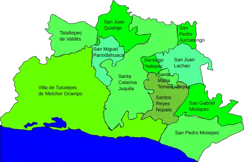 ![]() Oaxaca regions and districts: Costa region in the Southwest | |