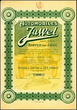 The company was reformed in 1927 as Usines Juwel in Herstal and a front wheel drive sports car, the TA-4 sold under the Astra marque, was produced with 1131 cc engine. The drive system was based on the one used in the French Tracta. The company closed in 1928.