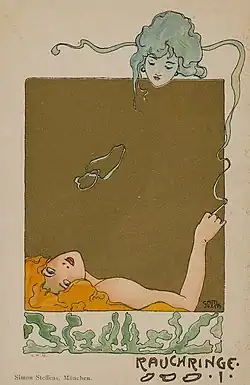 During his studies, he became friends with his fellow artist, Raphael Kirchner. Together, they went to Paris where they became involved in the picture postcard business. They created several hundred different designs, in the Art Nouveau style, mainly featuring young, slightly undressed women, often with an Orientalist theme. Much of their work foreshadowed the "pin-up" style which gained great popularity during World War I.