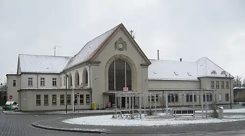 Köthen (German: Bahnhof Köthen) is a railway station located in Köthen, Germany. The station is located on the Magdeburg-Leipzig railway, Dessau–Köthen railway and Köthen–Aschersleben railway. The train services are operated by Deutsche Bahn. The train services on the Köthen–Aken railway finished in December 2007, due to too few passengers.