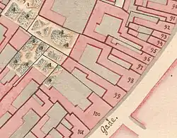 The number of residents had increased to 54 in 1845. Louis Klein (1719-), a book printer, resided on the first floor of the cross wing with his wife Emilie Køhlert, their two children (aged five and six), the wife's two sisters, a servant and two maids. Peter Jørgensen Hyltoft, a book binder, resided on the ground floor of the cross wing with his wife Catharina Hyltoft, their two children (aged five and eight), a book binder (employee), three apprentices and a maid. Jacob Lardilli, a new pastry baker, resided on the ground floor with his wife Ursula Lardilli, their three children (aged one to five). his mother Angelina Lardilli, a pastry baker (employee), an apprentice, a servant, a marqueur and a maid. Michael Fahrkld?, a master tailor, resided on the first floor with his wife Maria Cathrine (née Hansen), their five children (aged nine to 16), one servant and one maid. Engelhardt Aagaard, a merchant (urtekræmmer), resided on the first floor with his wife Cathrine, three employees (one of them an apprentice), two servants and a maid. Peter M. Ipsen, another master tailor, resided on the second floor with his wife Anna Magdalene Hirrigsen, their two-year-old daughter, two daughters from the wife's first marriage, a 55-year-old widow and a maid. [9]