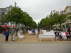 Pier forecourt with the protected sculpture of Vater und Sohn ("Father and Son")