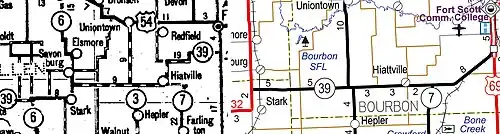 - ^ Kansas Department of Transportation (1999). Kansas Official State Transportation Map (PDF) (Map) (1999–2000 ed.). Scale not given. Topeka: Kansas Department of Transportation. Retrieved August 1, 2015.