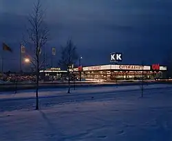 K-Citymarket is a Finnish hypermarket chain owned by Kesko. The chain has about 80 stores in Finland. The first K-Citymarket store was opened in Lahti year 1971.[1] The size of the stores are between 7,000 m² (75,347 sq ft) to 10,000 m² (107,639 sq ft). In all K-Citymarkets, a K-retailer is responsible for the sale of groceries, and Kesko for the consumer goods side. K-Citymarket's selections include foodstuffs as well as clothing, leisure, sports and home products.[2]