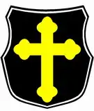 The emblem of the community is a golden trefoil cross on a black ground. Its members do not wear couleur. Askania-Burgundia's principles are religio (religion), scientia (science), and amicitia (friendship).