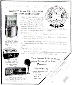 1924 advertisement for the Excelsior Motorcycle and Bicycle Co., "Operating Station KHQ".[3]