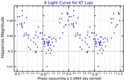 A light curve for KT Lupi, plotted from Hipparcos data [1]