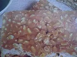 Ka’i ladrillo is a dessert in Paraguayan cuisine made with peanuts and molasses.[1] Its name comes from its rectangular brick-like shape (ladrillo) and the ka’i mirikina monkey native to Paraguay, known for its love of sweet things. It is also referred to as "azukapé manduví", which means "sugar", "flat", and "peanut" in Guaraní. To make ka’i ladrillo, molasses is boiled until the bottom of the pot is visible, and then toasted peanuts are added, either whole or chopped. Some recipes may include sour orange or grapefruit juice to balance the sweetness. The mixture is then poured into flat, wet molds to cool and set.[2] The dessert is typically high in calories and protein due to the lack of nutritious food in Paraguay after the Paraguayan War.[3]