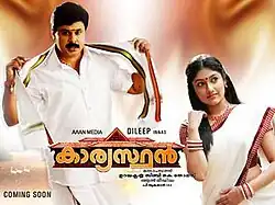 Kaaryasthan (transl. The Caretaker) is a 2010 Malayalam-language action comedy film written by the duo Udaykrishna–Sibi K. Thomas and directed by debutant Thomson K. Thomas. It stars Dileep, Siddique, Madhu, Suraj Venjaramoodu and Biju Menon. It was Dileep's 100th feature film.[2][3][4] Akhila, a noted television anchor and dancer, debuted as an actress through this film.[5] The film was released on November 5 coinciding with Diwali.The film received highly positive reviews from critics became a blockbuster at box office and it was also one of the highest grossing Malayalam films of 2010.[2]